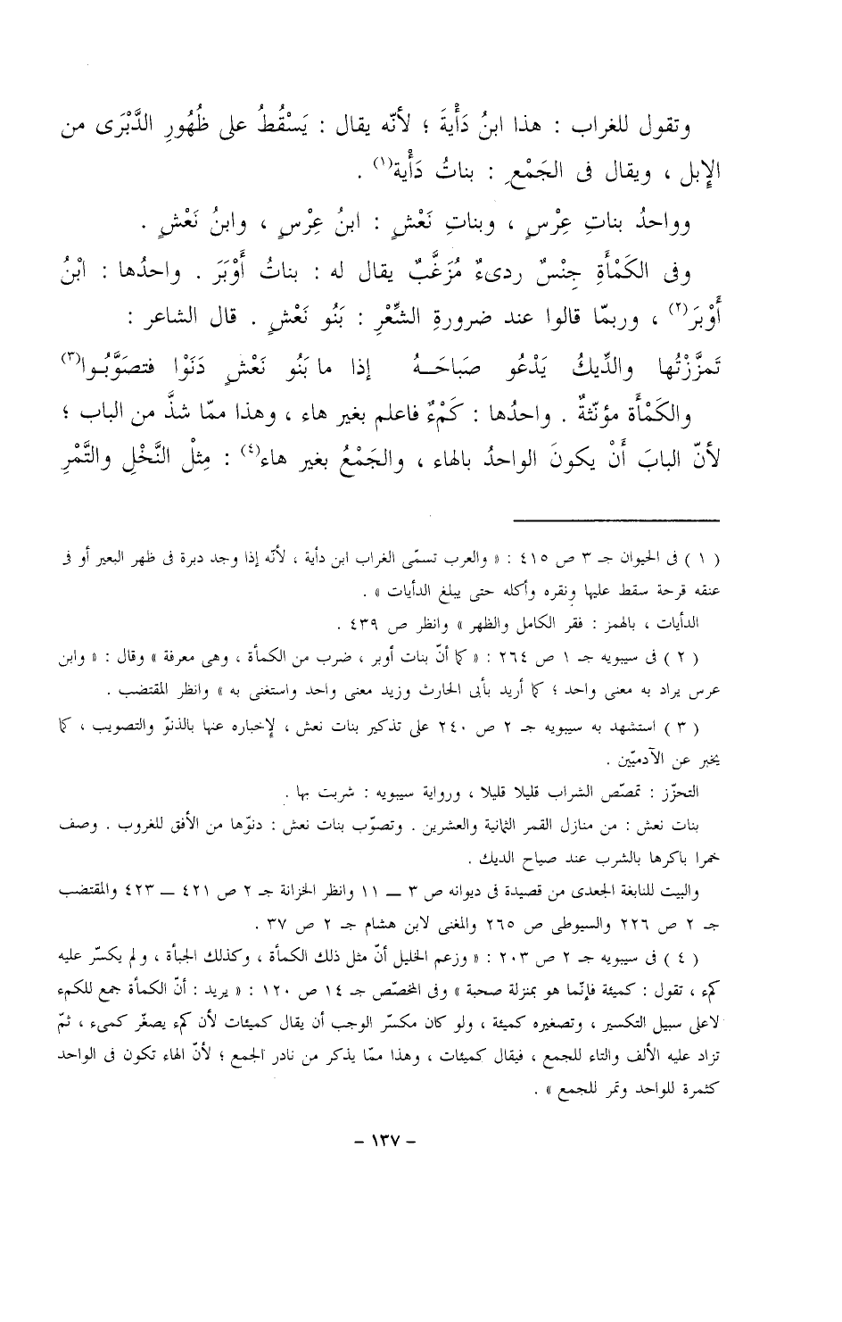 وواحدُ بنات عرسٍ، وبنات نعشٍ: ابنُ عرسٍ، وابنُ نَعْشٍ.