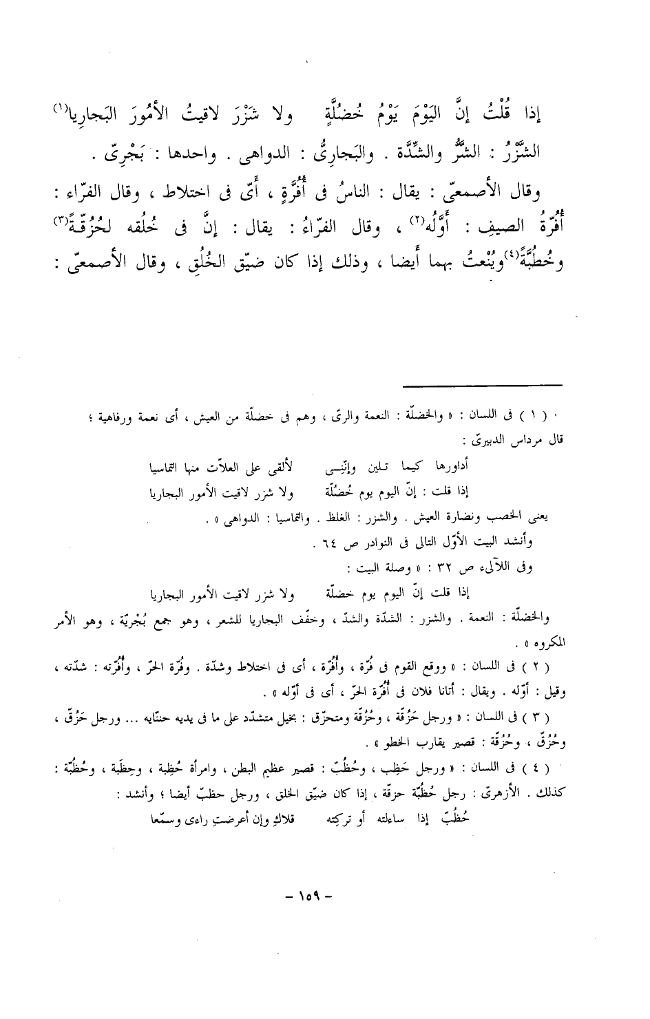 وقال الأصمعي: يقال: الناس في أفرةٍ، أي في اختلاط، وقال الفراء: أفرةُ الصيف: أوله، وقال الفراء: يقال: إن في خلقه لحزقةً وخطبةً، وينعتُ بهما أيضاً، وذلك إذا كان ضيق الخلق، وقال الأصمعي: