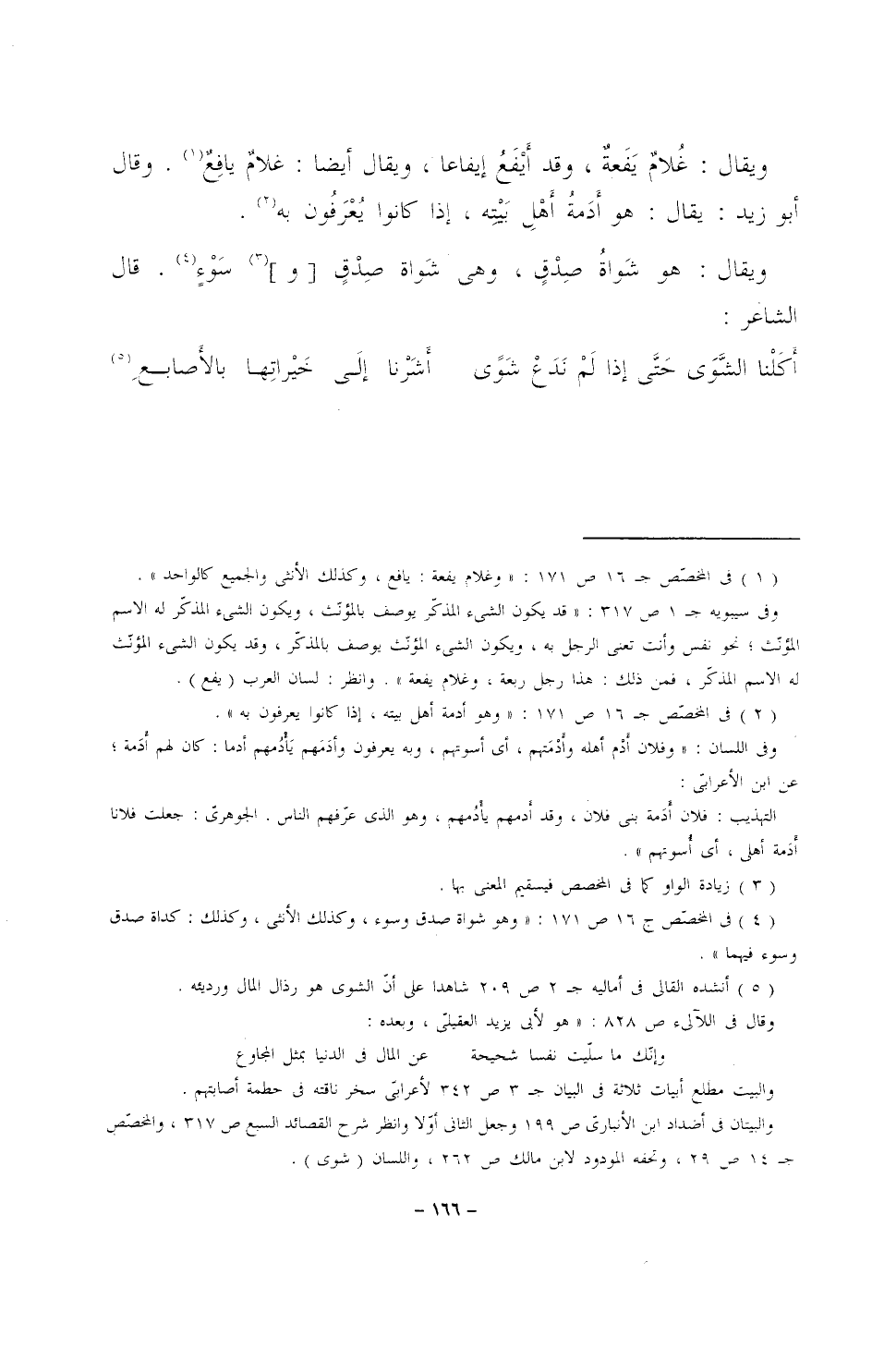 ويقال: غلامٌ يفعةٌ، وقد أيْفَعُ إيفاعا، ويقال أيضاً: غلامٌ يافعٌ. وقال أبو زيد: يقال: هو أدَمةُ أهلِ بيته، إذا كانوا يُعْرَفُون به.