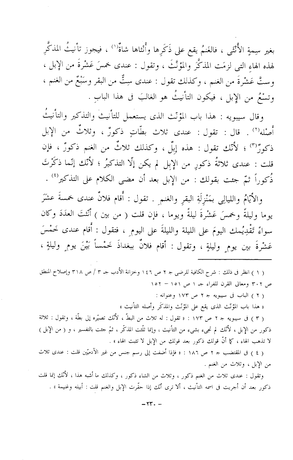 والأيام والليالي بمنزلة البقر والغنم. تقول: أقام فلان عندي خمسة عشر يوماً وليلة وخمس عشرة ليلة ويوما، فإن قلت (من بين) أنثت العدد وكان سواء تقديمك اليوم على الليلة والليلة على اليوم، فتقول: أقام عندي خمس عشرة بين يومٍ وليلةٍ، وتقول: أقام فلان ببغداد خمساً بين يوم وليلة،