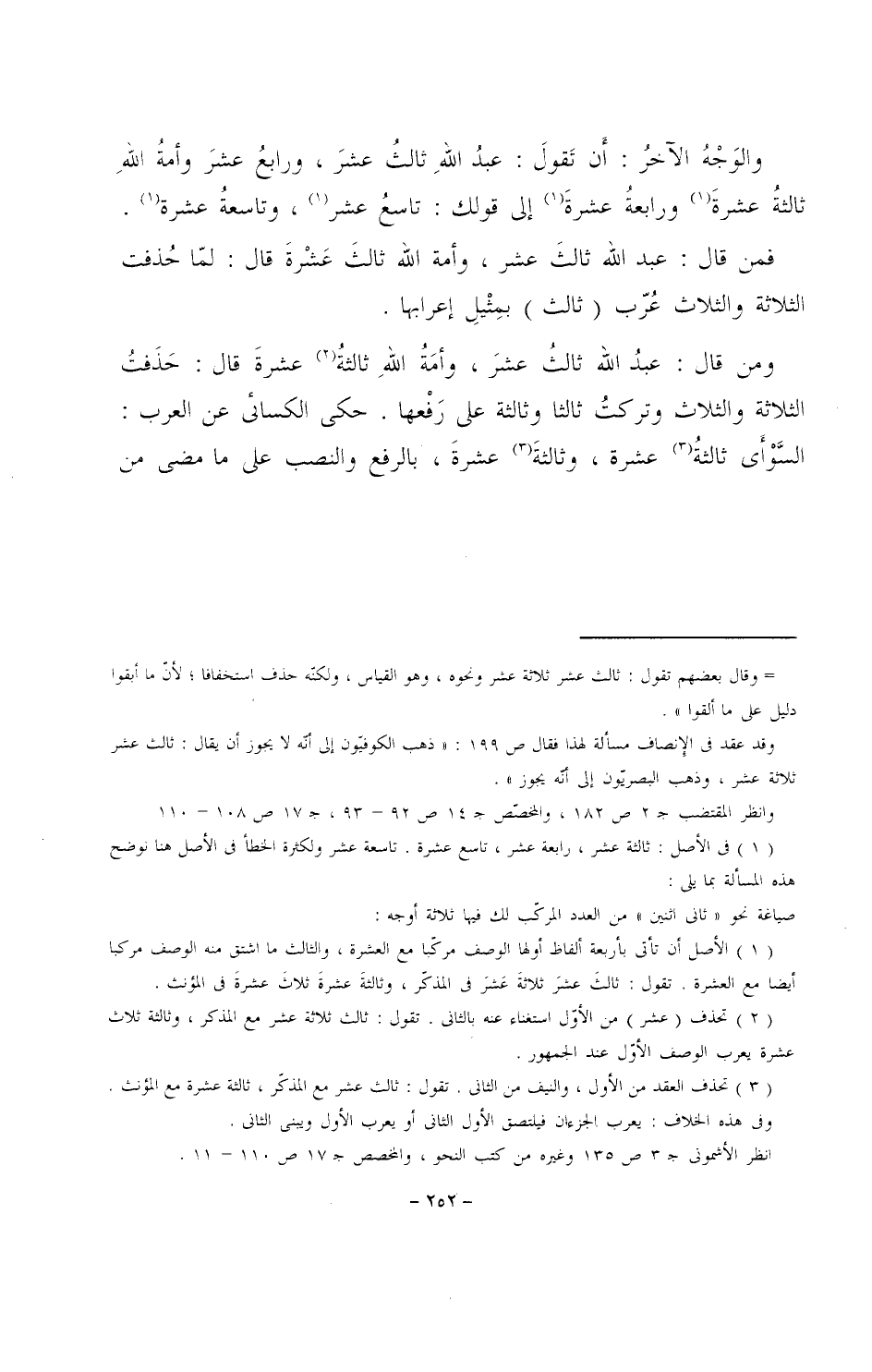 فمن قال: عبد الله ثالث عشر، وأمة الله ثالث عشرة قال: لما حذفت الثلاثة والثلاث عرب (ثالث) بمثيل إعرابها.