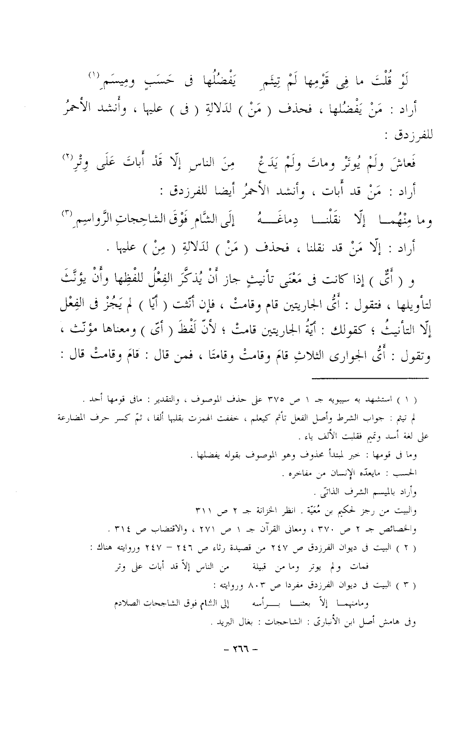 أراد: من قد أبات، وأنشد الأحمر أيضًا للفرزدق: