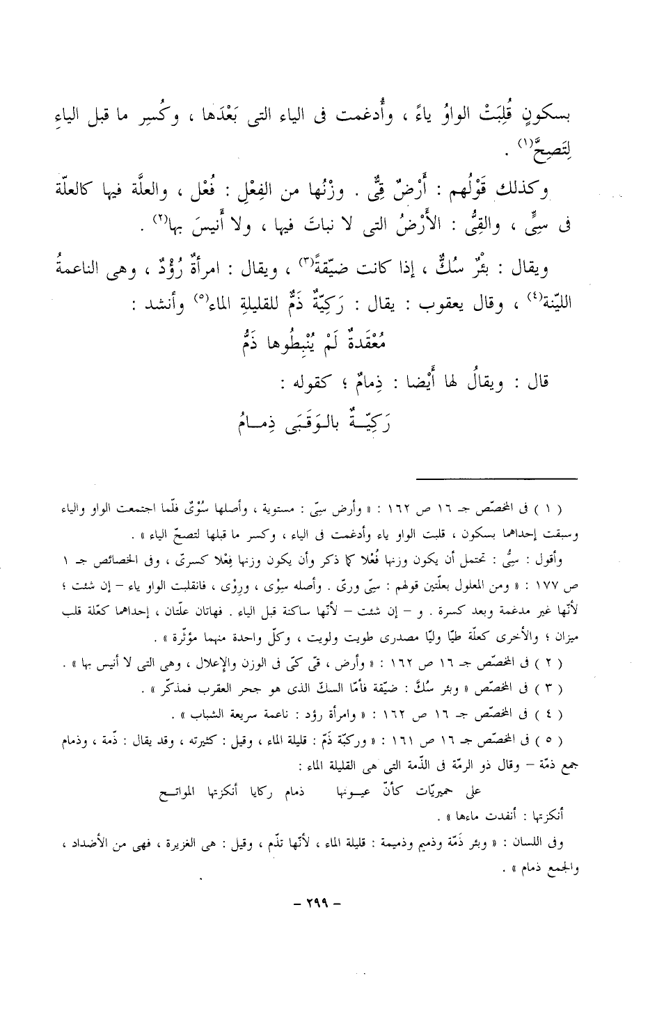 وكذلك قولهم: أرض قي. وزنها من الفعل: فُعْل، والعلة فيها كالعلة في سي، والقي: الأرض التي لا نبات فيها، ولا أنيس بها.