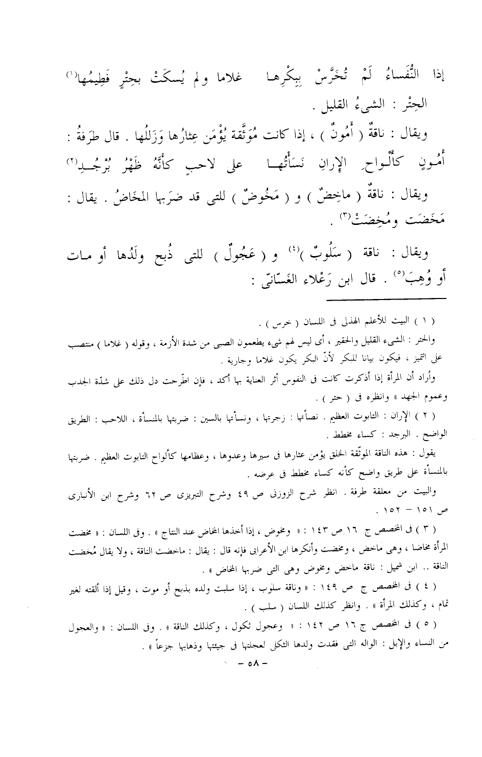 إذا النُّفساءُ لم تُخرَّس بِبِكرِها ... غلاماً ولم يُسكتْ بحِترٍ فطيمُها