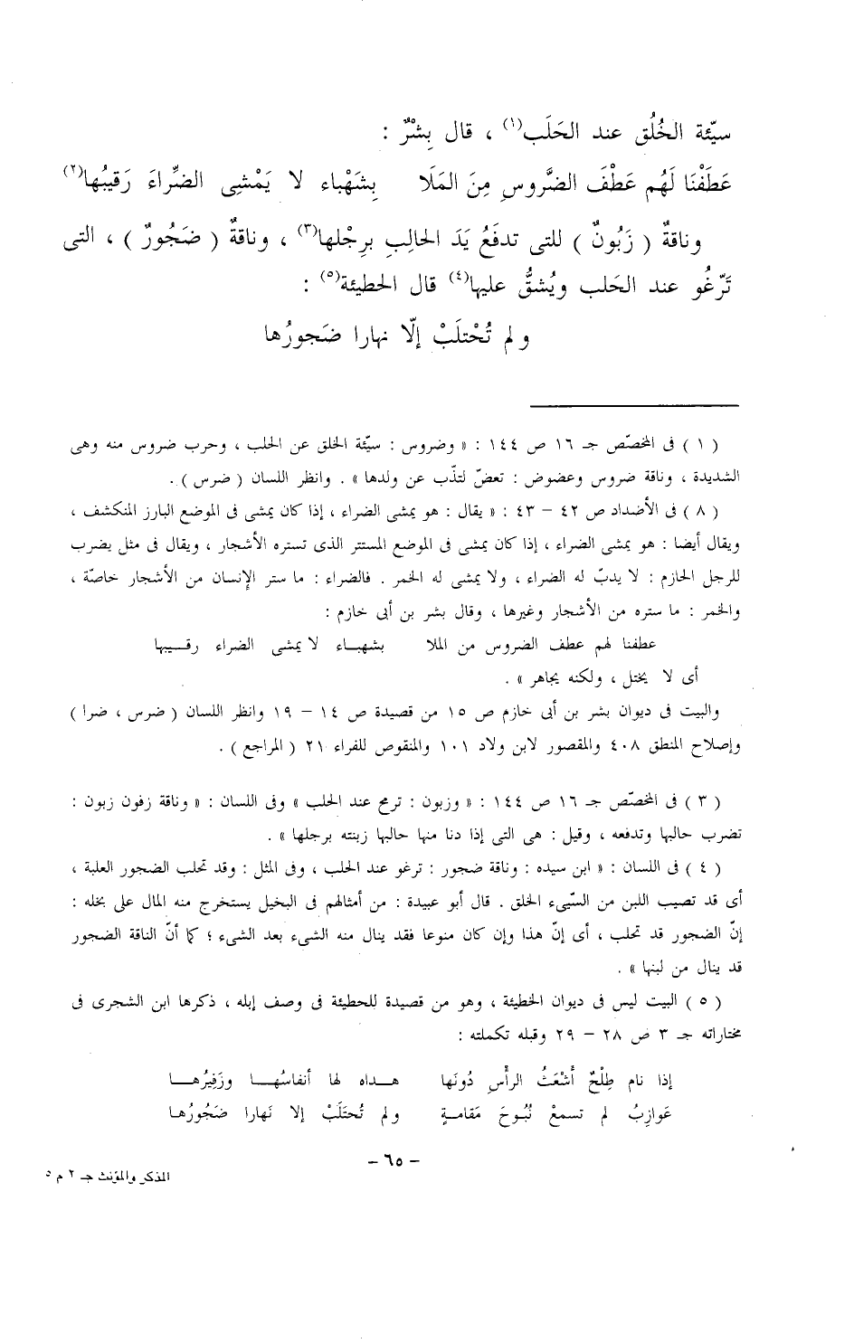 وناقةٌ (زبُونٌ) للتي تدفع يد الحالب برجلها، وناقةٌ (ضجورٌ)، التي ترغُو عند الحلب ويُشق عليها قال الحطيئة: