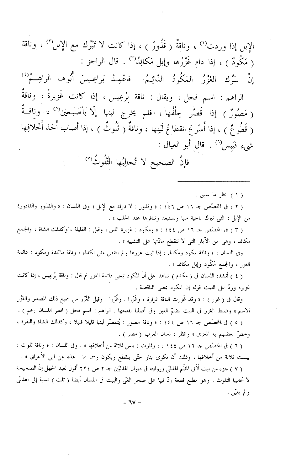 الراهم: اسم فحل، ويقال: ناقة بِرعِيس، إذا كانت غزيرةً، وناقةٌ (مَصُورٌ) إذا قصّر خِلفُها، فلم يخرج لبنها إلا بأصبعين، وناقةٌ (قطوعٌ)، إذا أسرع انقطاعُ لبنها، وناقةٌ (تَلُوثٌ)، إذا أصاب أحد أخلافِها شيء فيبس. قال أبو العيال: