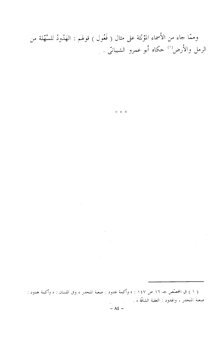 ومما جاء من الأسماء المؤنثة على مثال (فَعُول) قولهم: الهَدُودُ للسَّهلة من الرمل والأرض حكاه أبو عمرو الشيباني.