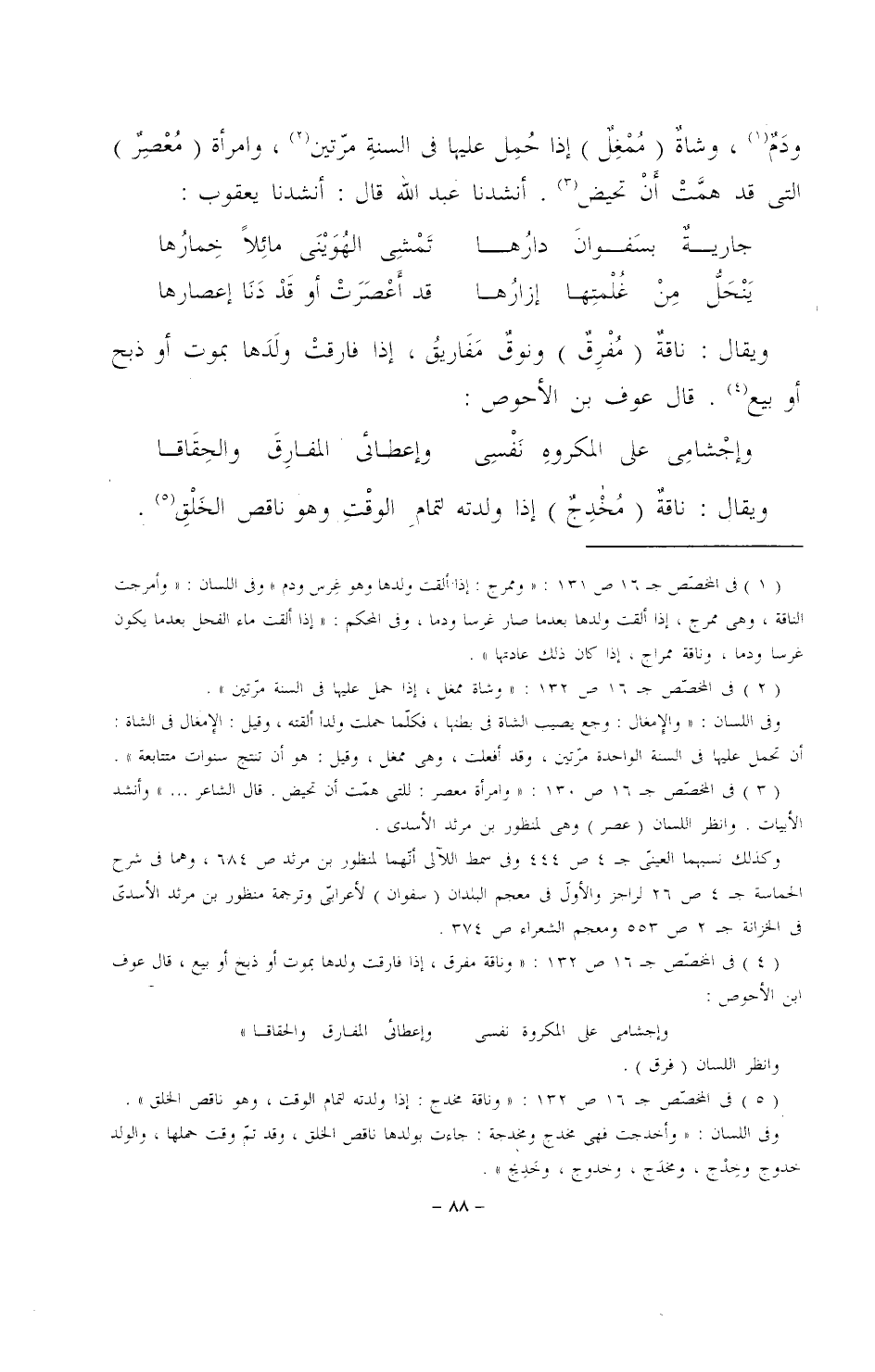 ويقال: ناقةٌ (مُفرِقٌ) ونوقٌ مفاريقُ، إذا فارقت ولدها بموت أو ذبح أو بيع. قال عوف بن الأحوص: