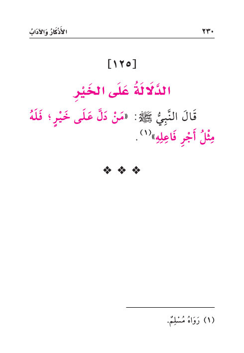 قَالَ النَّبِيُّ صَلَّى اللهُ عَلَيْهِ وَسَلَّمَ: «مَنْ دَلَّ عَلَى خَيْرٍ؛ فَلَهُ مِثْلُ أَجْرِ فَاعِلِهِ» (¬١) .