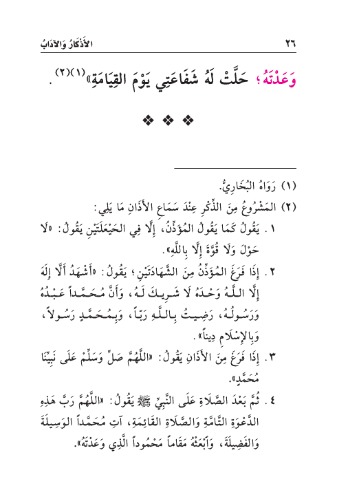(¬٢) المَشْرُوعُ مِنَ الذِّكْرِ عِنْدَ سَمَاعِ الأَذَانِ مَا يَلِي:
