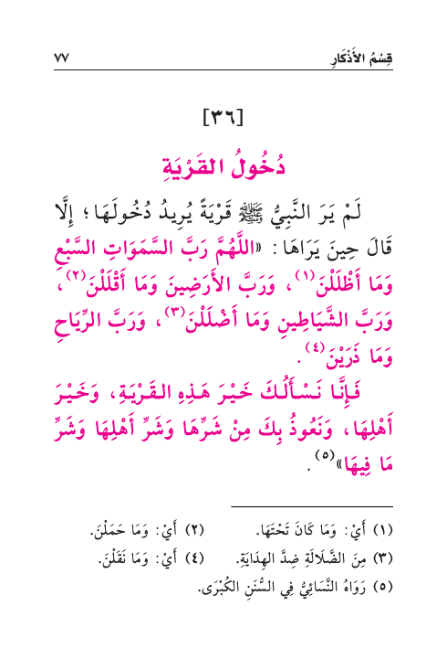 لَمْ يَرَ النَّبِيُّ صَلَّى اللهُ عَلَيْهِ وَسَلَّمَ قَرْيَةً يُرِيدُ دُخُولَهَا؛ إِلَّا قَالَ حِينَ يَرَاهَا: «اللهُمَّ رَبَّ السَّمَوَاتِ السَّبْعِ وَمَا أَظْلَلْنَ (¬١) ، وَرَبَّ الأَرَضِينَ وَمَا أَقْلَلْنَ (¬٢) ، وَرَبَّ الشَّيَاطِينِ وَمَا أَضْلَلْنَ (¬٣) ، وَرَبَّ الرِّيَاحِ وَمَا ذَرَيْنَ (¬٤) .