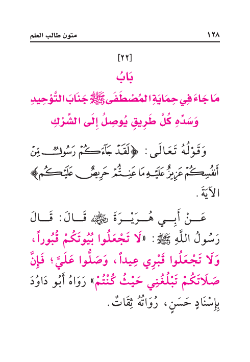 مَا جَاءَ فِي حِمَايَةِ المُصْطَفَى صَلَّى اللهُ عَلَيْهِ وَسَلَّمَ جَنَابَ التَّوْحِيدِ وَسَدِّهِ كُلَّ طَرِيقٍ يُوصِلُ إِلَى الشِّرْكِ