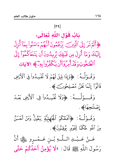 عَنْ عَبْدِ اللَّهِ بْنِ عَمْرٍو رَضِيَ اللهُ عَنْهُمَا أَنَّ رَسُولَ اللَّهِ صَلَّى اللهُ عَلَيْهِ وَسَلَّمَ قَالَ: «لَا يُؤْمِنُ أَحَدُكُمْ حَتَّى