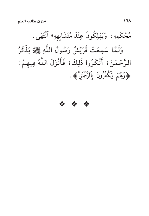 مُحْكَمِهِ، وَيَهْلِكُونَ عِنْدَ مُتَشَابِهِهِ» انْتَهَى.