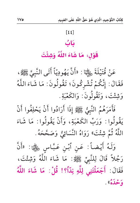 قَوْلِ: مَا شَاءَ اللَّهُ وَشِئْتَ