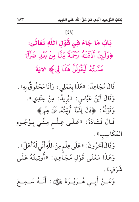 {وَلَئِنْ أَذَقْنَاهُ رَحْمَةً مِّنَّا مِن بَعْدِ ضَرَّاءَ مَسَّتْهُ لَيَقُولَنَّ هَذَا لِي} الآيَةَ