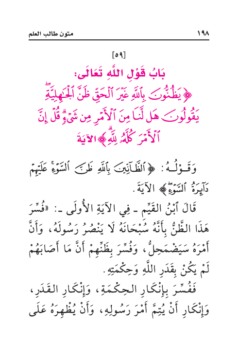 {يَظُنُّونَ بِاللَّهِ غَيْرَ الْحَقِّ ظَنَّ الْجَاهِلِيَّةِ يَقُولُونَ هَل لَّنَا مِنَ الْأَمْرِ مِن شَيْءٍ قُلْ إِنَّ الْأَمْرَ كُلَّهُ لِلَّهِ} الآيَةَ