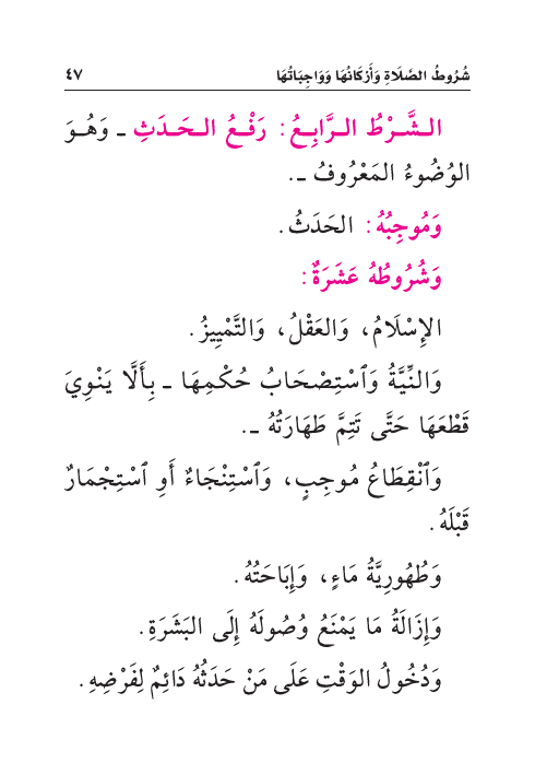 الشَّرْطُ الرَّابِعُ: رَفْعُ الحَدَثِ - وَهُوَ الوُضُوءُ المَعْرُوفُ -.