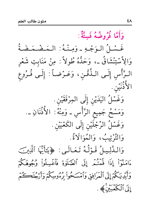 وَالدَّلِيلُ قَوْلُهُ تَعَالَى: {يَاأَيُّهَا الَّذِينَ آمَنُوا إِذَا قُمْتُمْ إِلَى الصَّلَاةِ فَاغْسِلُوا وُجُوهَكُمْ وَأَيْدِيَكُمْ إِلَى الْمَرَافِقِ وَامْسَحُوا بِرُءُوسِكُمْ وَأَرْجُلَكُمْ إِلَى الْكَعْبَيْنِ}.