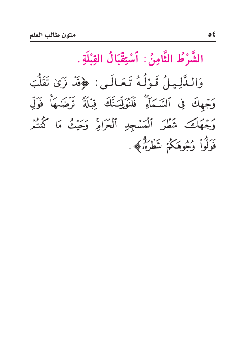الشَّرْطُ الثَّامِنُ: اسْتِقْبَالُ القِبْلَةِ.
