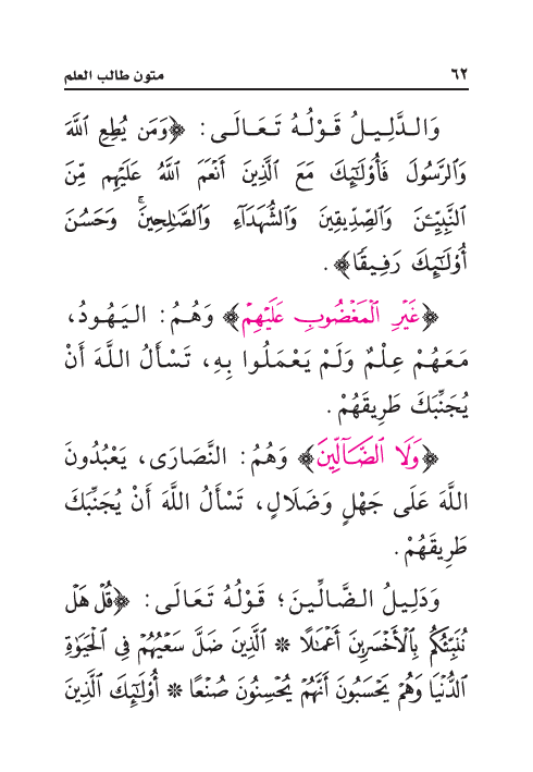{غَيْرِ الْمَغْضُوبِ عَلَيْهِمْ} وَهُمُ: اليَهُودُ، مَعَهُمْ عِلْمٌ وَلَمْ يَعْمَلُوا بِهِ، تَسْأَلُ اللَّهَ أَنْ يُجَنِّبَكَ طَرِيقَهُمْ.