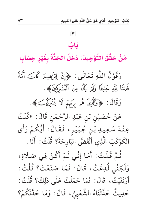 مَنْ حَقَّقَ التَّوْحِيدَ؛ دَخَلَ الجَنَّةَ بِغَيْرِ حِسَابٍ
