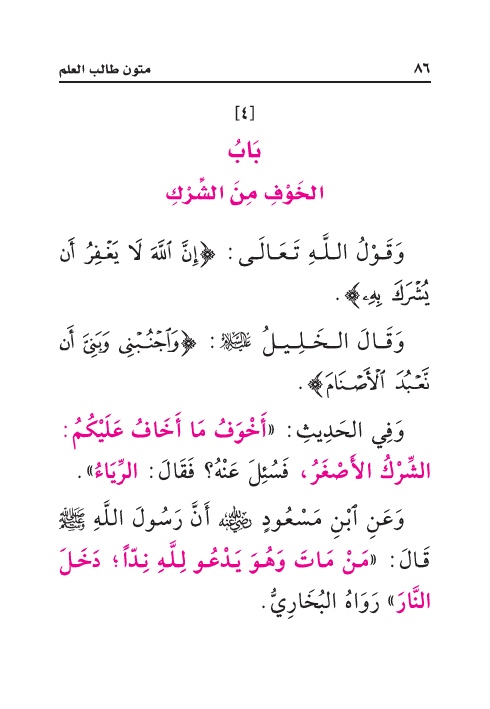 وَفِي الحَدِيثِ: «أَخْوَفُ مَا أَخَافُ عَلَيْكُمُ: الشِّرْكُ الأَصْغَرُ، فَسُئِلَ عَنْهُ؟ فَقَالَ: الرِّيَاءُ».