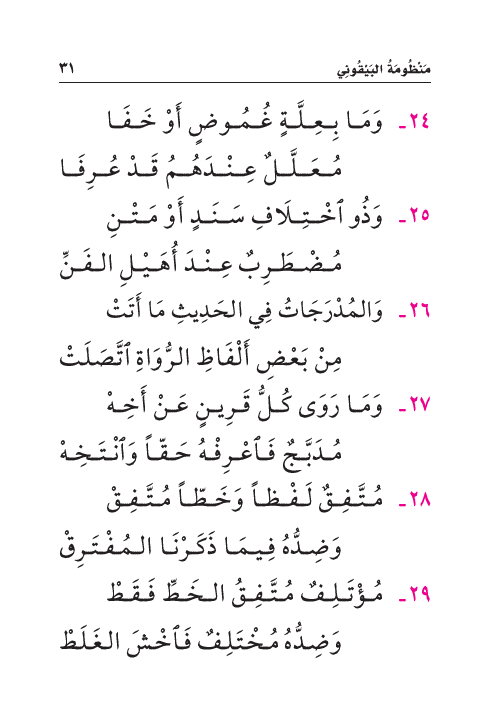 ٢٩ - مُؤْتَلِفٌ مُتَّفِقُ الخَطِّ فَقَطْ ... وَضِدُّهُ مُخْتَلِفٌ فَاخْشَ الغَلَطْ
