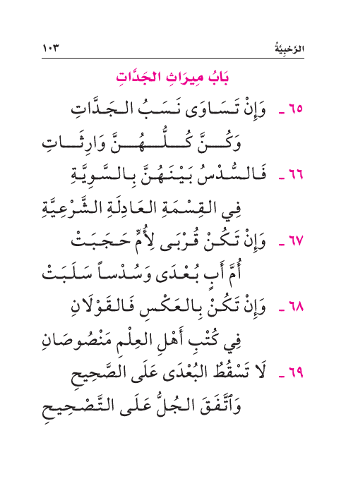 ٦٥ ـ وَإِنْ تَسَاوَى نَسَبُ الجَدَّاتِ ... وَكُنَّ كُلُّهُنَّ وَارِثَاتِ
