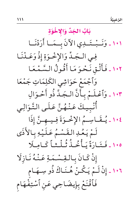 ١٠١ ـ وَنَبْتَدِي الآنَ بِمَا أَرَدْنَا ... فِي الجَدِّ وَالإِخْوَةِ إِذْ وَعَدْنَا