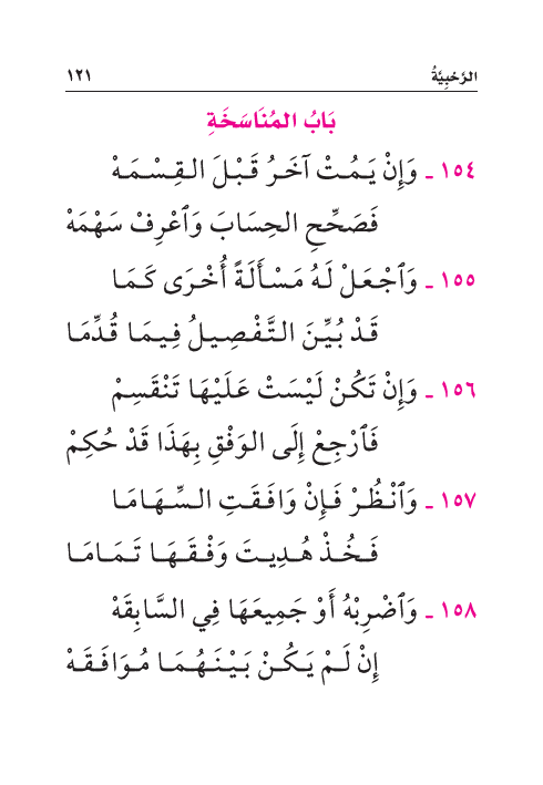 ١٥٤ ـ وَإِنْ يَمُتْ آخَرُ قَبْلَ القِسْمَهْ ... فَصَحِّحِ الحِسَابَ وَاعْرِفْ سَهْمَهْ