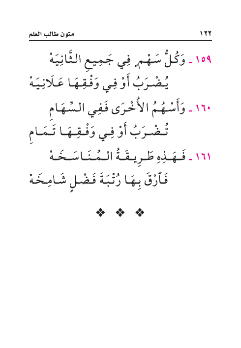١٦١ ـ فَهَذِهِ طَرِيقَةُ المُنَاسَخَهْ ... فَارْقَ بِهَا رُتْبَةَ فَضْلٍ شَامِخَهْ