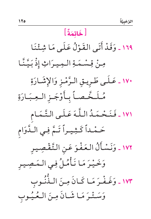 ١٧٢ ـ وَنَسْأَلُ العَفْوَ عَنِ التَّقْصِيرِ ... وَخَيْرَ مَا نَأْمُلُ فِي المَصِيرِ