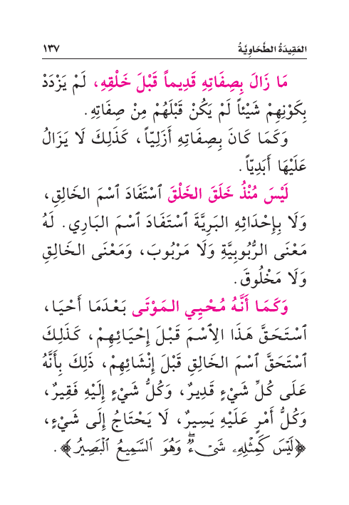 وَكَمَا كَانَ بِصِفَاتِهِ أَزَلِيّاً، كَذَلِكَ لَا يَزَالُ عَلَيْهَا أَبَدِيّاً.