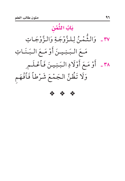 ٣٨ ـ أَوْ مَعَ أَوْلَادِ البَنِينَ فَاعْلَمِ ... وَلَا تَظُنَّ الجَمْعَ شَرْطاً فَافْهَمِ