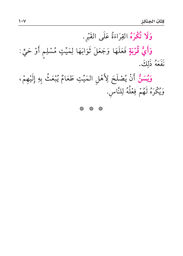 وَلَا تُكْرَهُ القِرَاءَةُ عَلَى القَبْرِ.
