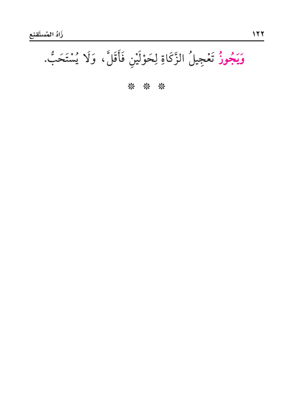 وَيَجُوزُ تَعْجِيلُ الزَّكَاةِ لِحَوْلَيْنِ فَأَقَلَّ، وَلَا يُسْتَحَبُّ.