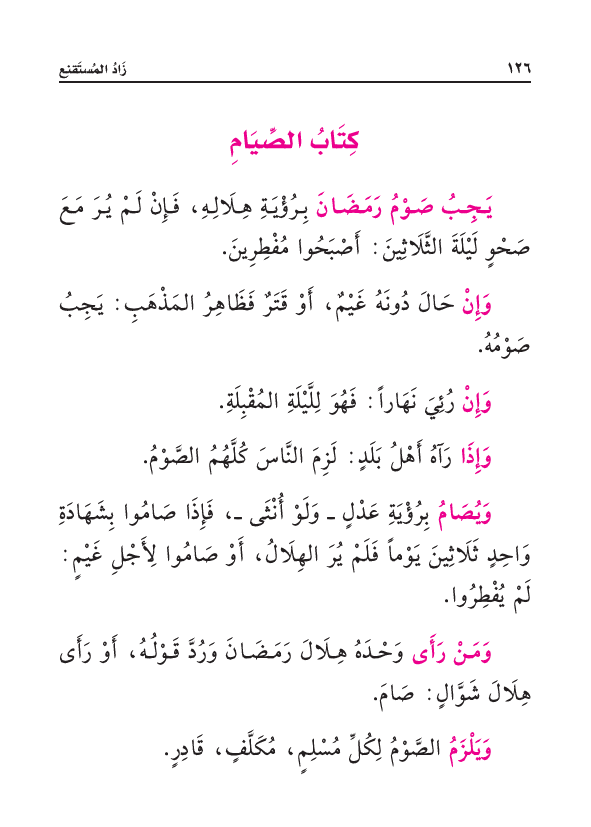 وَيَلْزَمُ الصَّوْمُ لِكُلِّ مُسْلِمٍ، مُكَلَّفٍ، قَادِرٍ.