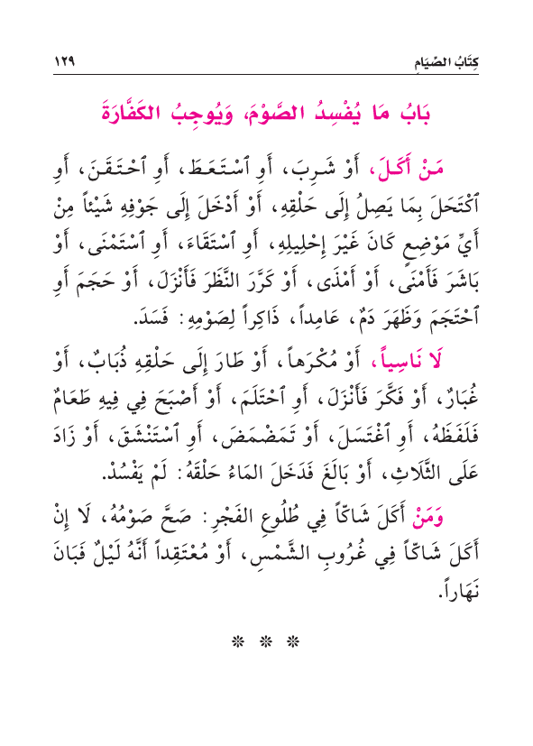 بَابُ مَا يُفْسِدُ الصَّوْمَ، وَيُوجِبُ الكَفَّارَةَ