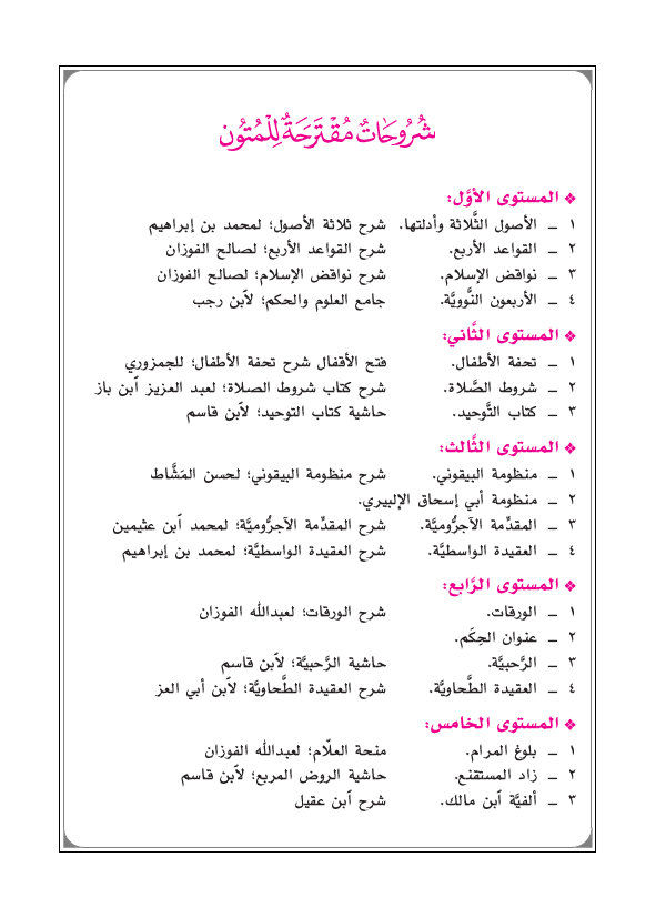 شُرُوحَاتٌ مُقْتَرَحَةُ لِلْمُتُون