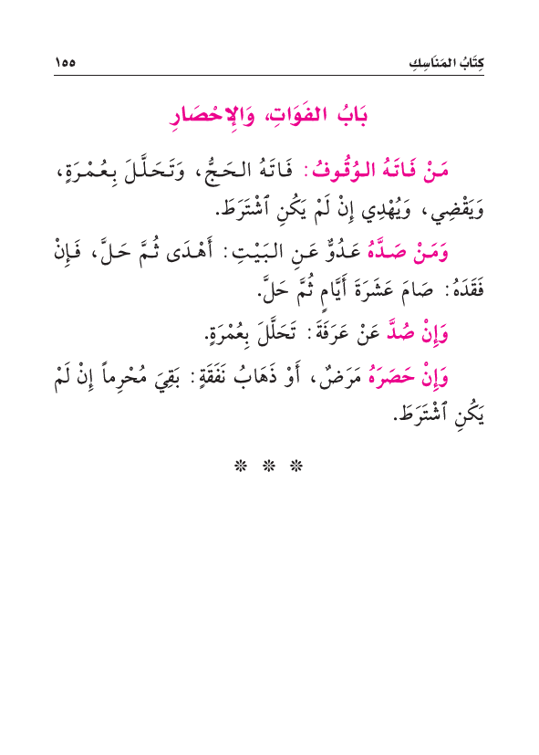 بَابُ الفَوَاتِ وَالإِحْصَارِ