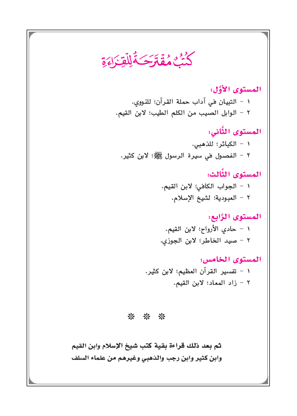 كُتُبٌ مُقْتَرَحَةٌ لِلْقِرَاءَةِ