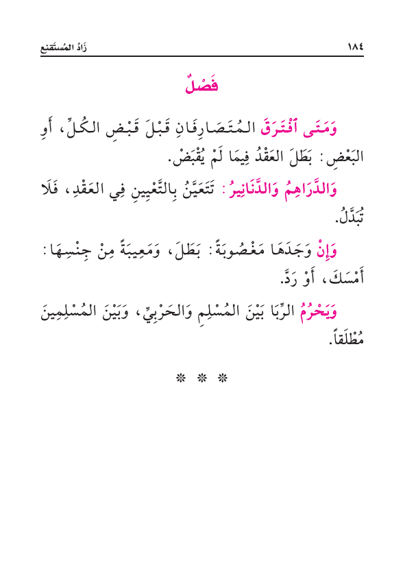 وَمَتَى افْتَرَقَ المُتَصَارِفَانِ قَبْلَ قَبْضِ الكُلِّ، أَوِ البَعْضِ: بَطَلَ العَقْدُ فِيمَا لَمْ يُقْبَضْ.