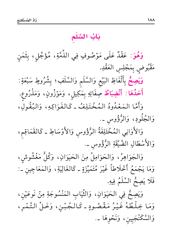 وَيَصِحُّ بِأَلْفَاظِ البَيْعِ وَالسَّلَمِ وَالسَّلَفِ بِشُرُوطٍ سَبْعَةٍ: