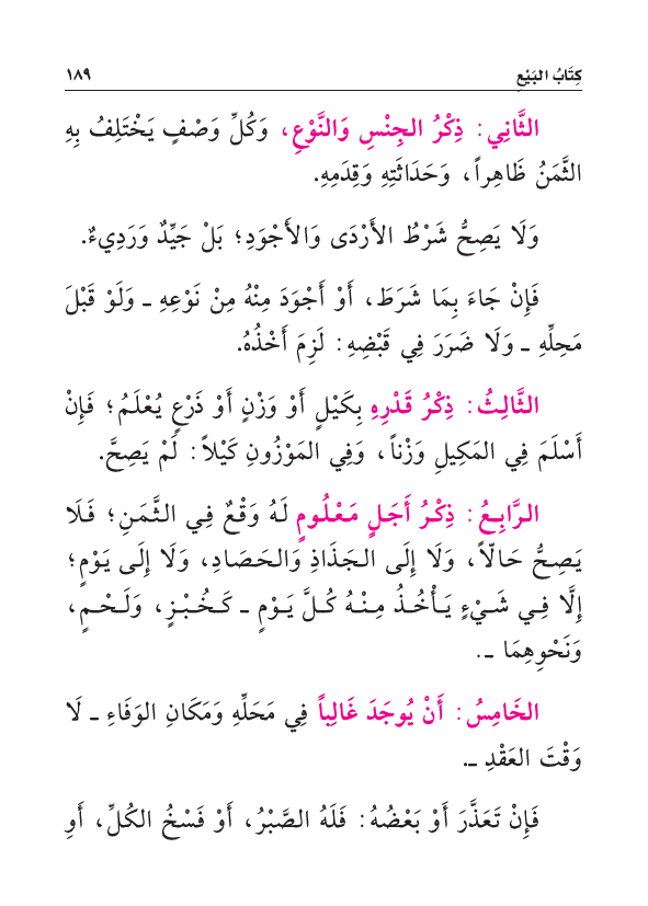 الثَّانِي: ذِكْرُ الجِنْسِ وَالنَّوْعِ، وَكُلِّ وَصْفٍ يَخْتَلِفُ بِهِ الثَّمَنُ ظَاهِراً، وَحَدَاثَتِهِ وَقِدَمِهِ.