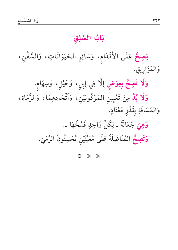 وَلَا تَصِحُّ بِعِوَضٍ إِلَّا فِي إِبِلٍ، وَخَيْلٍ، وِسِهَامٍ.