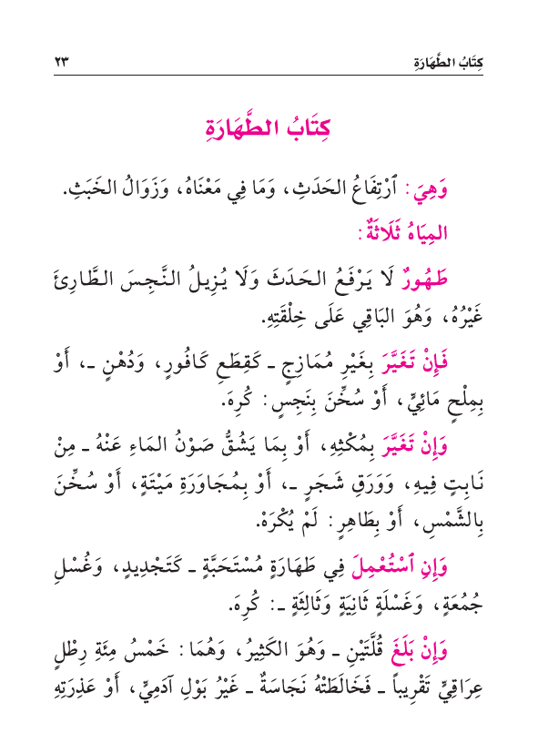 طَهُورٌ لَا يَرْفَعُ الحَدَثَ وَلَا يُزِيلُ النَّجِسَ الطَّارِئَ غَيْرُهُ، وَهُوَ البَاقِي عَلَى خِلْقَتِهِ.