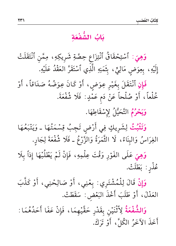 وَهِيَ: اسْتِحْقَاقُ انْتِزَاعِ حِصَّةِ شَرِيكِهِ، مِمَّنِ انْتَقَلَتْ إِلَيْهِ، بِعِوَضٍ مَالِيٍّ، بِثَمَنِهِ الَّذِي اسْتَقَرَّ العَقْدُ عَلَيْهِ.