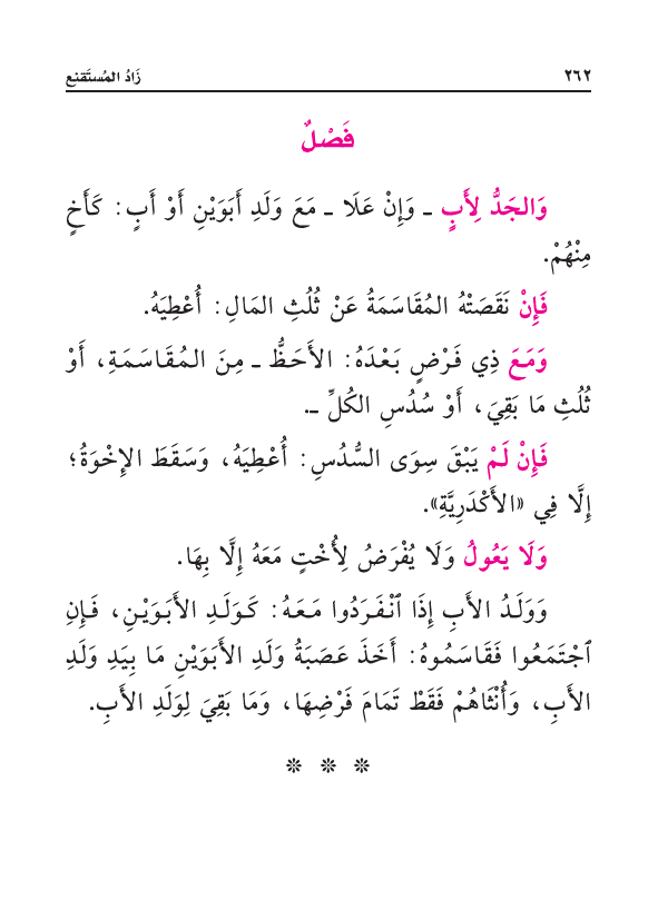 وَوَلَدُ الأَبِ إِذَا انْفَرَدُوا مَعَهُ: كَوَلَدِ الأَبَوَيْنِ، فَإِنِ اجْتَمَعُوا فَقَاسَمُوهُ: أَخَذَ عَصَبَةُ وَلَدِ الأَبَوَيْنِ مَا بِيَدِ وَلَدِ الأَبِ، وَأُنْثَاهُمْ فَقَطْ تَمَامَ فَرْضِهَا، وَمَا بَقِيَ لِوَلَدِ الأَبِ.