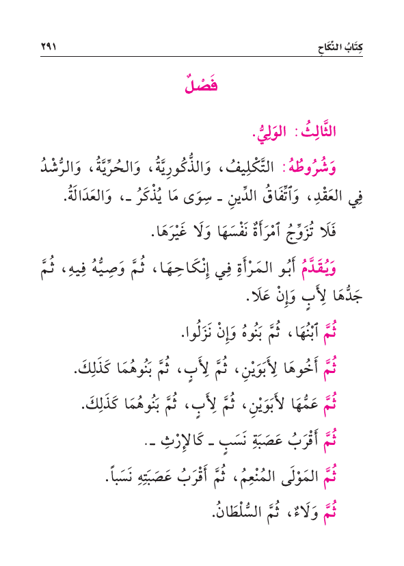 ثُمَّ المَوْلَى المُنْعِمُ، ثُمَّ أَقْرَبُ عَصَبَتِهِ نَسَباً، ثُمَّ وَلَاءٌ، ثُمَّ السُّلْطَانُ.
